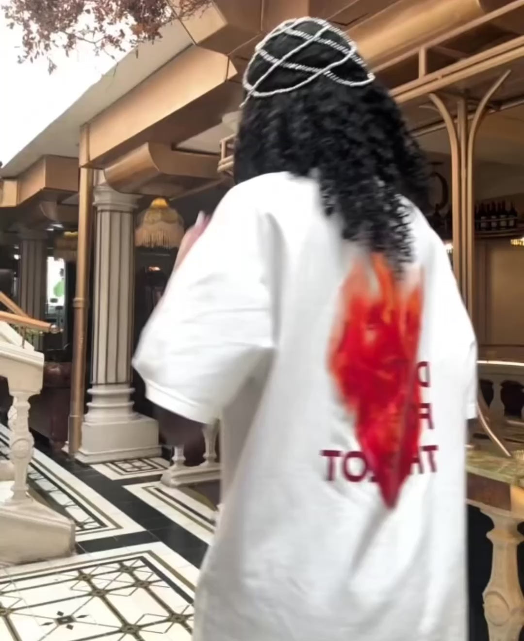 Camiseta manga corta horma Oversized, es unisex con un gramaje de 250g, es elaborada en 100% algodon con una textura suave al tacto. Lleva un estampado en la espalda con una medida de 40cm de alto y en la parte frontal llevau na frase bordada de 14cm de ancho.